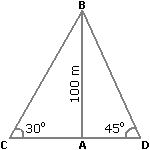 Two ships are sailing in the sea on the two sides of a lighthouse. The angle of elevation of the top of the lighthouse is observed from the ships are 30° and 45° respectively. respectively. If the lighthouse is 100 m high, the distance between the two ships is: