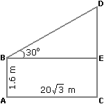 An observer 1.6 m tall is 203 away from a tower. The angle of elevation from his eye to the top of the tower is 30°. The height of the tower is: