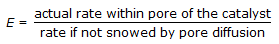 Effectiveness factor (E) of a catalyst pellet is defined as,
