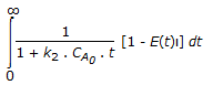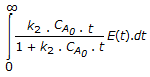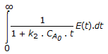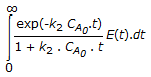 The mean conversion in the exit stream, for a second order, liquid phase reaction in a non-ideal flow reactor is given by