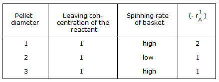Following isothermal kinetic data are obtained in a basket type of mixed flow reactor for a porous catalyst. Determine the role of pore diffusion and external mass transfer processes.