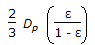 Hydraulic mean radius for flow through packed bed of spherical particle of size, 'Dp, with porosity 'ε' is