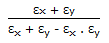The interchange factor for radiation heat transfer from surface 'x' to surface 'y' in case of an infinite parallel planes with emis-sivities εx & εy is given by