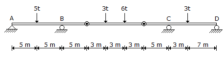 The reaction at the support D of the continuous beam ABCD, hinged at two points shown in below figure is