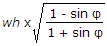 If (Ï) is the angle of repose of soil of weight w kg/m3, the horizontal pressure p at a depth of h metres per metre length of wall, is
