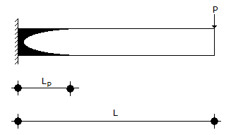 The length LP of the plastic zone, when the maximum bending moment equals the plastic moment MP, given by
