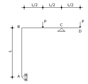 A frame ABCD is supported by a roller at A and is on a hinge at C as shown below