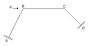 The degree of kinematic indeterminacy of the rigid frame with clamped ends at A and D shown in the below figure is,