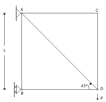 15. The strain energy stored in member AB of the pin-jointed truss shown in the below figure, when E and A are same for all members, is