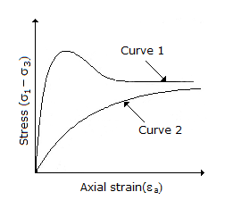 The stress-strain behaviour of soils as shown in the following figure corresponds to :