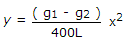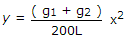 An upgrade g1% is followed by a downgrade g2%. The equation of the parabolic curve of length L to be introduced, is given by