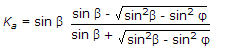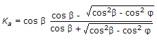 If β is the surcharge angle of a backfill with an angle of internal friction Ï, the coefficient of active earth pressure given by Rankine's theory, i