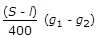 If the sight distance (S) is equal to the length of the vertical-curve (2l) joining two grades g1% and - g2%, the height of the apex will be