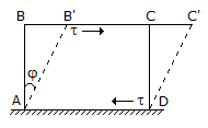 The side AD of the square block ABCD as shown in the given figure is fixed at the base and it is under a state of simple shear causing shear stress τ and shear strain π, where