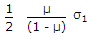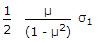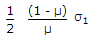 A bar of elastic material is subjected to a direct compressive stress σ1 in the longitudinal direction. Suitable lateral compressive stress σ2 is applied along each of the other two lateral directions to limit the net strain in each of the lateral directions to half the magnitude of what it could be under σ1 acting alone. If μ is the Poisson's ratio of the material, then the magnitude of σ2 is