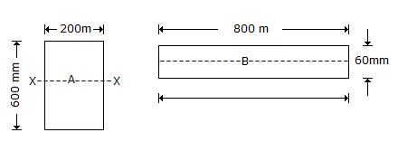 Cross sections of two beams A (600mm x 200mm) and B (800mm x 60mm) are shown in the given figure. Both the beams have the same material. By how many times is the beam A stronger than the beam B in resisting bending ?