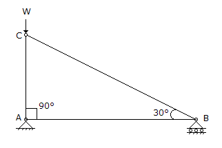 In the truss shown in the given figure, the forces in the members AB and BC will be respectively (plus denotes tension)