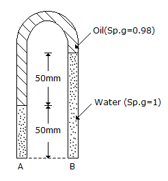 In the set up shown in the above figure, assuming the specific weight of water as 10, 000 N/m3, the pressure difference between the points A and B will be