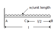 11. In the cantilever beam shown in the figure, what is the percentage of bending moment at l/2 with respect to the maximum bending moment at the fixed support ?