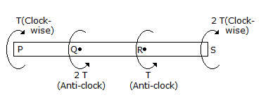 A shaft PQRS is subjected to torques at P, Q, R, S as shown in the given figure.