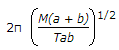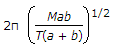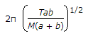 A particle of mass M is attached to a light horizontal wire which is stretched tightly between two fixed ends with a tension T. If a and b are the distances of the particle from the two ends, then the period of a small transverse oscillation of the particle is given by