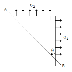 In the given figure, σ1 and the σ2 and maximum and minimum principal stresses. In order that the resultant stress on the plane AB is
