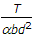 A beam of rectangular cross-section (b x d) is subjected to a torque T. What is the maximum torsional stress induced in the beam ?(Where b < d, and α is a constant)