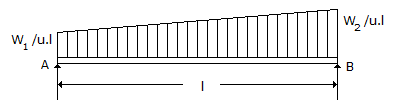 A simply supported beam of span 'l' is loaded (as shown in the given figure) with a uniformly varying load of intensity w1/unit length at 'A' to w2/unit length at 'B'. A The shear force at the support 'B' is given by
