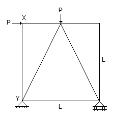 15. A truss is shown in the given figure. The cross-sectional area of each member is 'A' and the modulus of elasticity of the material is E. The strain energy in the member XY is given by