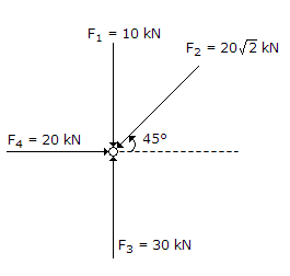 The resultant of the coplanar, concurrent system of forces F1, F2, F3 and F4 shown in the above figure is