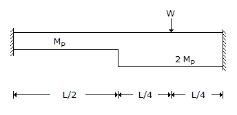 Figure given below shows a fixed beam of steel: At the point of collapse, the value of load W will be