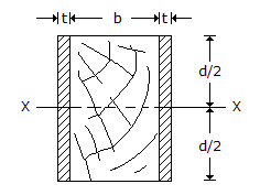 13. The given figure shows the section of a wooden beam stiffened with two steel plates each of thickness 't' securely fixed to the sides. The second moment of area of the flitched beam about the X-X axis is (given: d = overall depth of the beam, b = width of the wooden section and m = modular ratio of the moduli of elasticity of steel and wood)