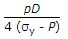 A thin cylindrical shell of internal diameter D is subject to an internal pressure 'p'. If σy is the yield stress of the material of the cylinder, then based on the maximum shear theory, the thickness of the cylinder will be (in kg/cm2) is
