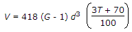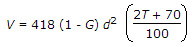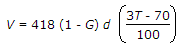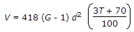 If G is the specific gravity of particles of diameter d, the velocity of settlement V in still water at T°C, according to Stoke's law, is