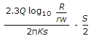 Q is the discharge from an unconfined tube well with depression head S through a pipe of radius rw. If the radius of influence is R, the minimum required length of the strainer, is