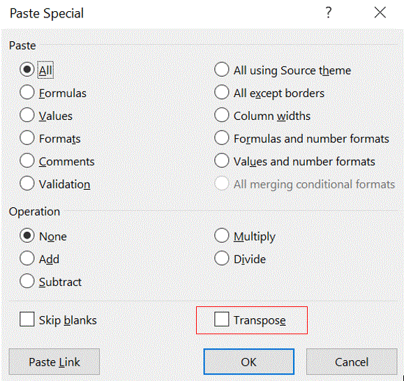 - Which of the following option is not available in Paste Special dialog box?