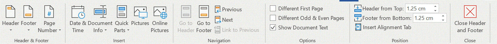 - Insert Date, Format Page Number, and Insert AutoText are buttons on the ________ toolbar.