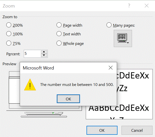 - Which of the following are valid Minimum and Maximum zoom sizes in Ms-office?