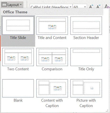 Blank Slide is at the top of the ‘Content Layouts’ area in the Slide Layout panel |
