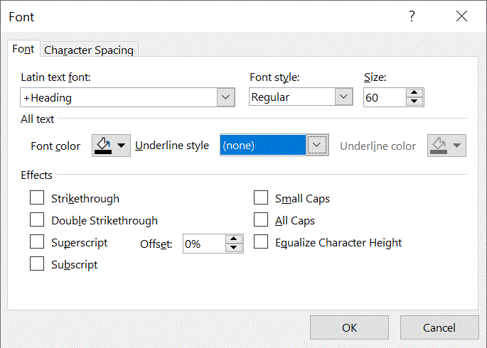 - Which of the following font effect is available in PowerPoint Font dialog box?