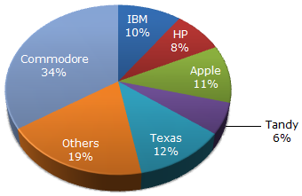 The pie chart shows the distribution of New York market share by value of different computer companies in 2005.