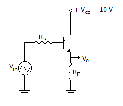In the circuit shown in figure, RC = 10k, RE = 150Ω, β = 100, I = 1 mA. The value of