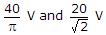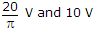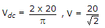 A bridge diode circuit using ideal diodes has in input voltage of 20 sin ωt volts. The average and rms values of output voltage are