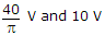 A 120 V, 30 Hz source feeds a half wave rectifier circuit through a 4 : 1 step down transformer, the average output voltage is