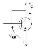 For an npn transistor connected as shown in the figure VBE = 0.7 volts. Given that reverse saturation current of the junction at room temperature 300K is 10-13A, the emitter current.