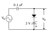 For an I/p of Vs = 5 sin ωt (assuming ideal diode), circuit shown in the figure will behave as a