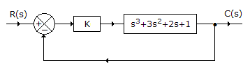 7. The given figure shows a control system. The maximum value of gain for which the system is stable is