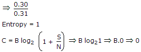 When the channel is noisy, producing a conditional probability of error p = 0.5; the channel capacity and entropy function would be, respectively,