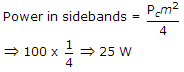 13. In a 100% amplitude modulated signal, the power in the upper sideband when carrier power is to be 100 W and modulation system SSBSC, is