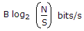 If B is channel bandwidth, S is signal power and N is the total noise within the channel bandwidth, the channel capacity C of a white band limited gaussian channel is